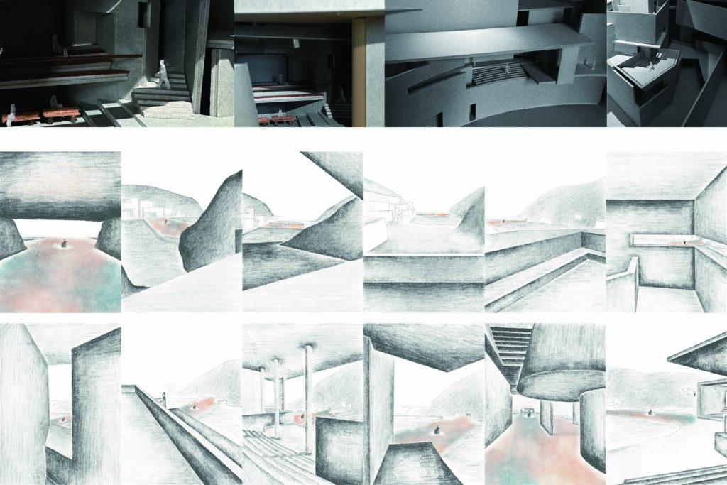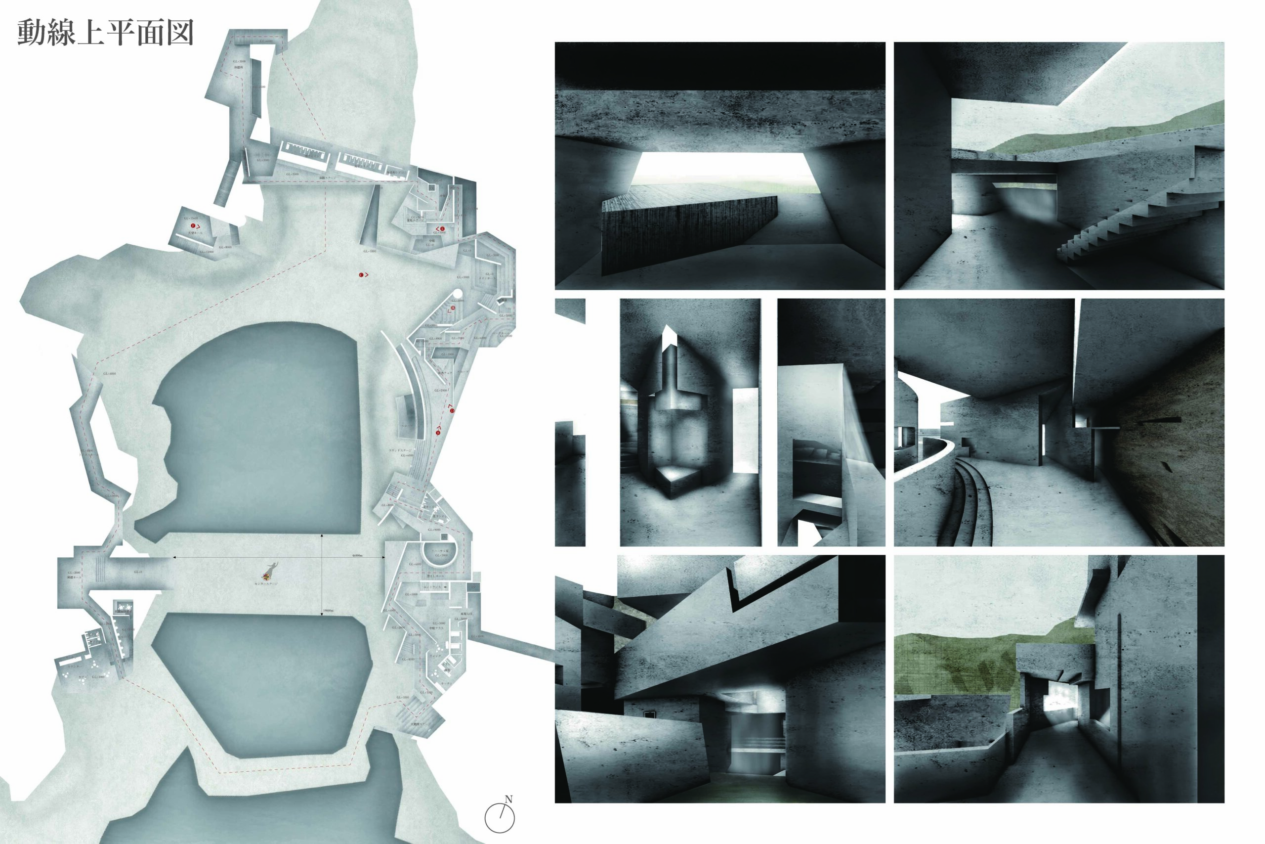 「迷う」ことを緊張と魅惑の入り混じる豊かな経験と捉え、記憶の中の風景と身体が一体化し、我を失い導かれるような曖昧で確かな感覚を辿るところから本研究は始まりました。自ら歩き繋ぎ、出会いと気付きの主体的経験が優位となる「迷える劇場」の提案です。審査では、敷地性や都市的な構築ルーツ、劇場のリアリティと迷うことの連動性など評価していただきました。迷うことへの印象の多様さが興味深く、奥深いなと感じます。