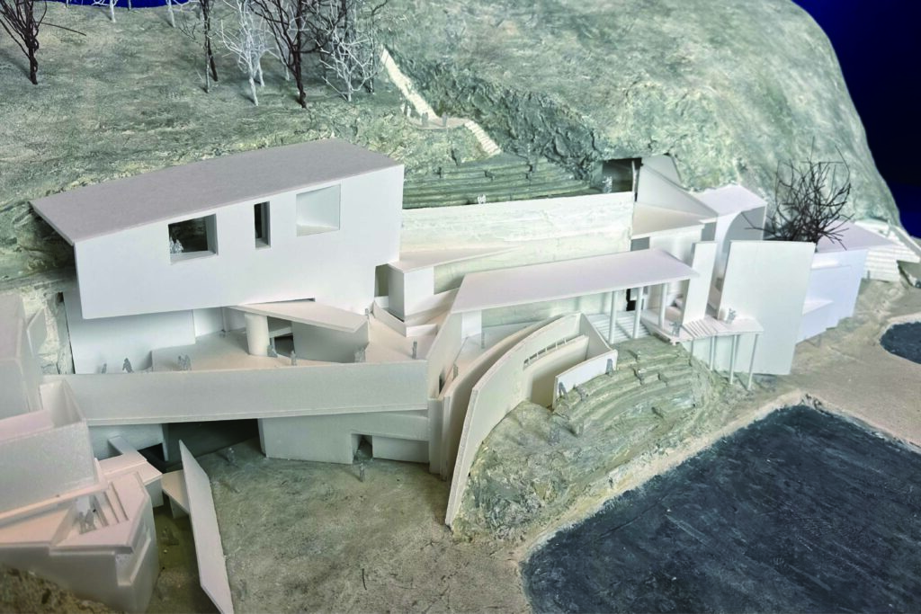 その中で、林雅子賞は、前島由衣さんの「迷うことについて」に贈られました。ヴェネチアの街路という都市的な魅力の本質を「迷うこと」ととらえ、その再構成を図った作品です。デザイン的な完成度の高さもさることながら、迷うという体験は、単に複雑な形状から生み出されるのではなく、揺らぎの秩序という一定の定位をもたらす状態から生み出されるという考察から、両義的な魅力を持つ建築が提案されました。ばらばらのエレメントが複雑に配置された傍らには空白の舞台が設けられ、地形と相まって、大きな環境把握と個別の空間体験が同時に行われるような経験が生み出されました。