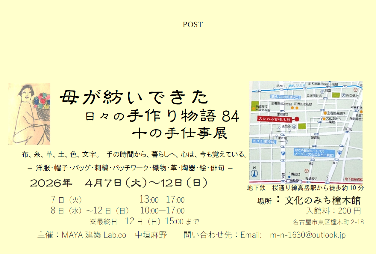 暮らしの中から生まれた、母の個展「十の手しごと展」を名古屋にて開催します。