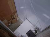10mの高さをもつ内部空間に60㎝の隙間をあけて、3層にわたって4つの個室を内包する小さな箱が詰めこまれ、残りの空間は、すべて共用空間となってい ます。通りに面したファサードはテント幕でできており、ジッパーをあけて中にはいると3層の吹き抜け空間から住宅の全体が見えます。